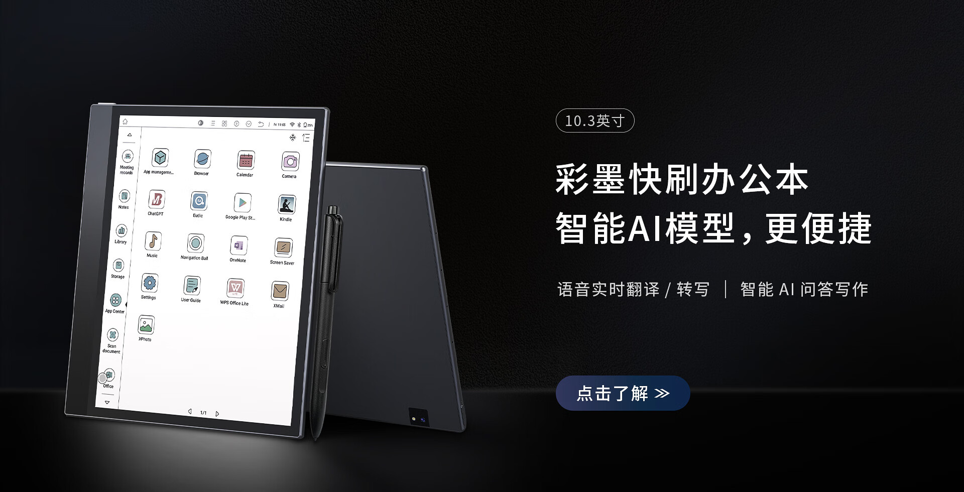 SAMBADA电纸书10.3英寸彩色墨水屏电子书阅读器 AI智能办公本 手写电子笔记本会议记录神器语音转文字 智能办公本【6G+128G】+送皮套+电磁笔